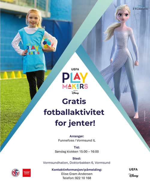 Fuvo inviterer alle jenter mellom 5-8 år til gratis fotballaktivitet i Vormsundhallen hver søndag mellom 15.00-16.00.